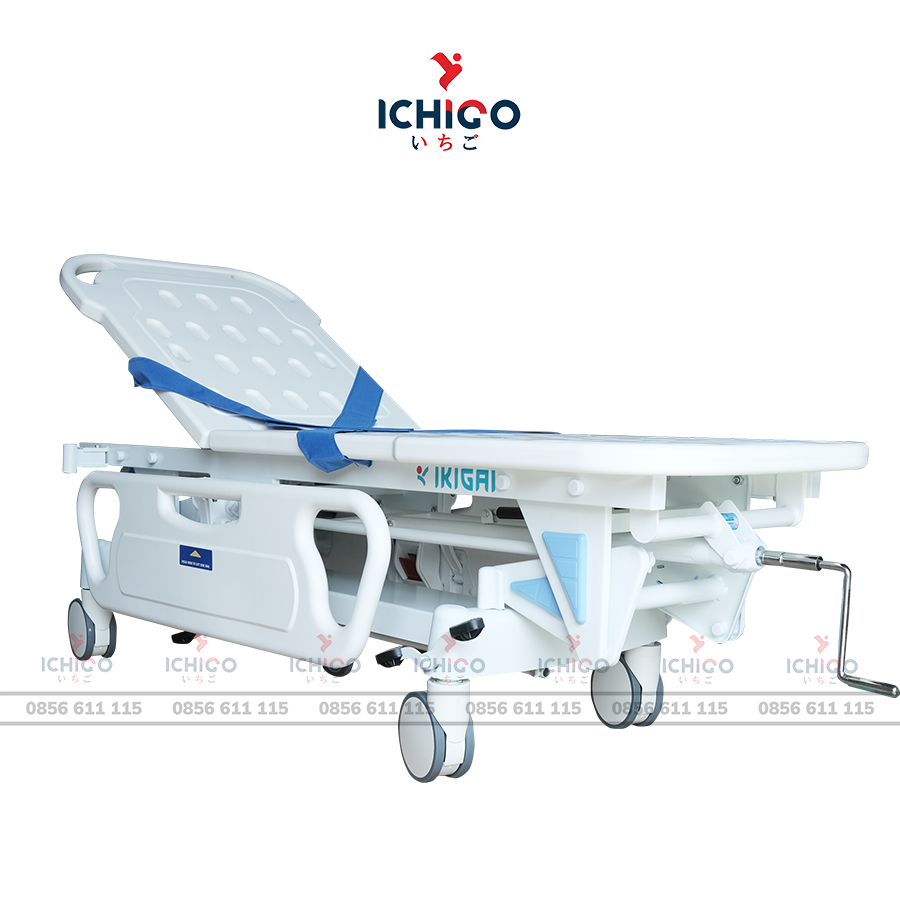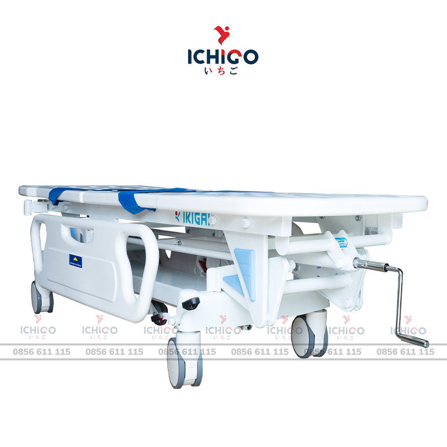 Chiều cao băng ca được điều chỉnh bằng tay quay cơ học tích hợp cơ cấu ly hợp an toàn, giúp thao tác ổn định và chính xác. Dải điều chỉnh linh hoạt từ 530 – 820 mm, phù hợp với nhiều không gian sử dụng và đáp ứng hiệu quả các tình huống vận chuyển, bàn giao bệnh nhân trong môi trường y tế.